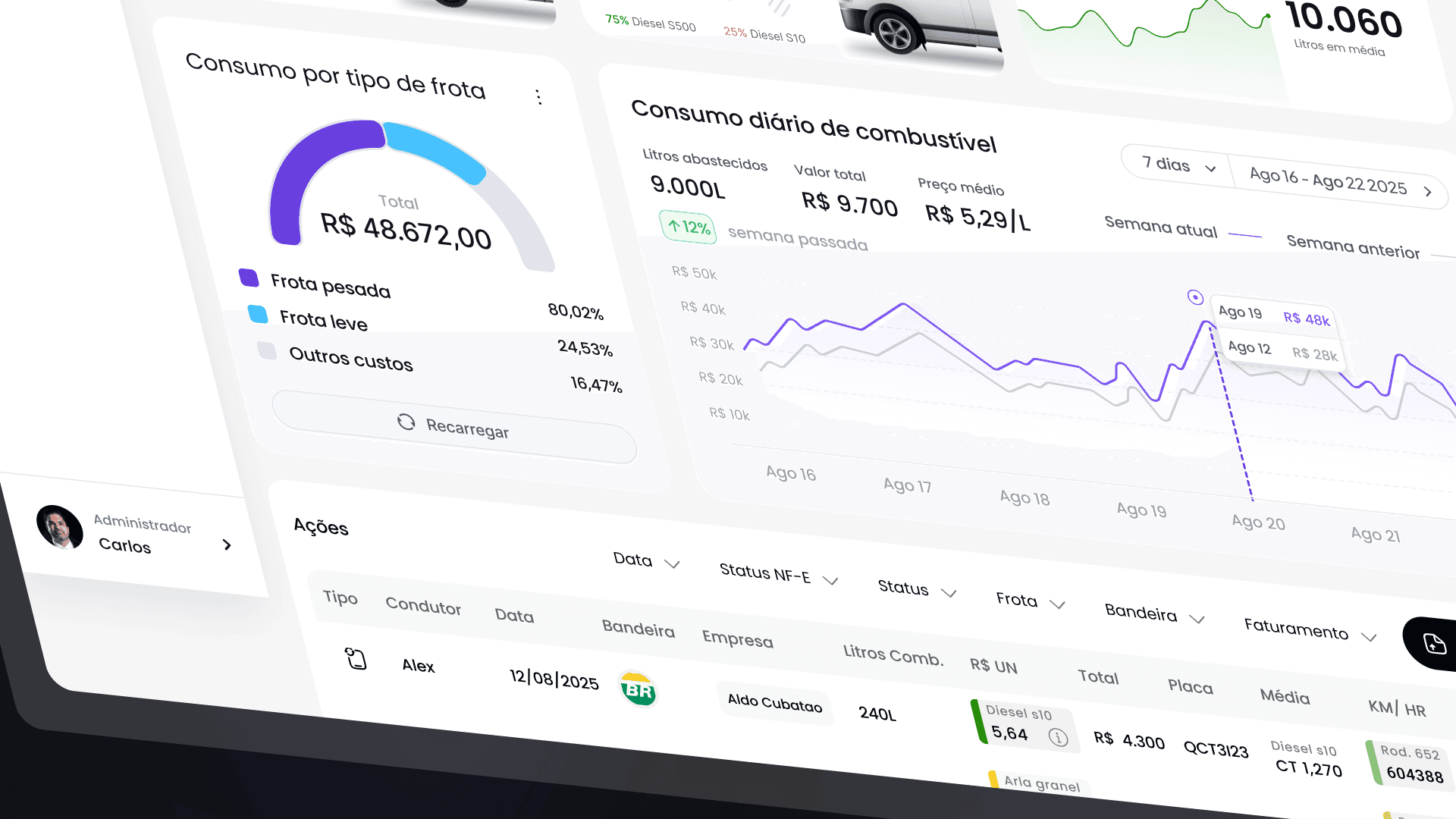 Dessa forma, gestores conseguem monitorar o desempenho da frota e tomar decisões operacionais com mais rapidez e clareza.